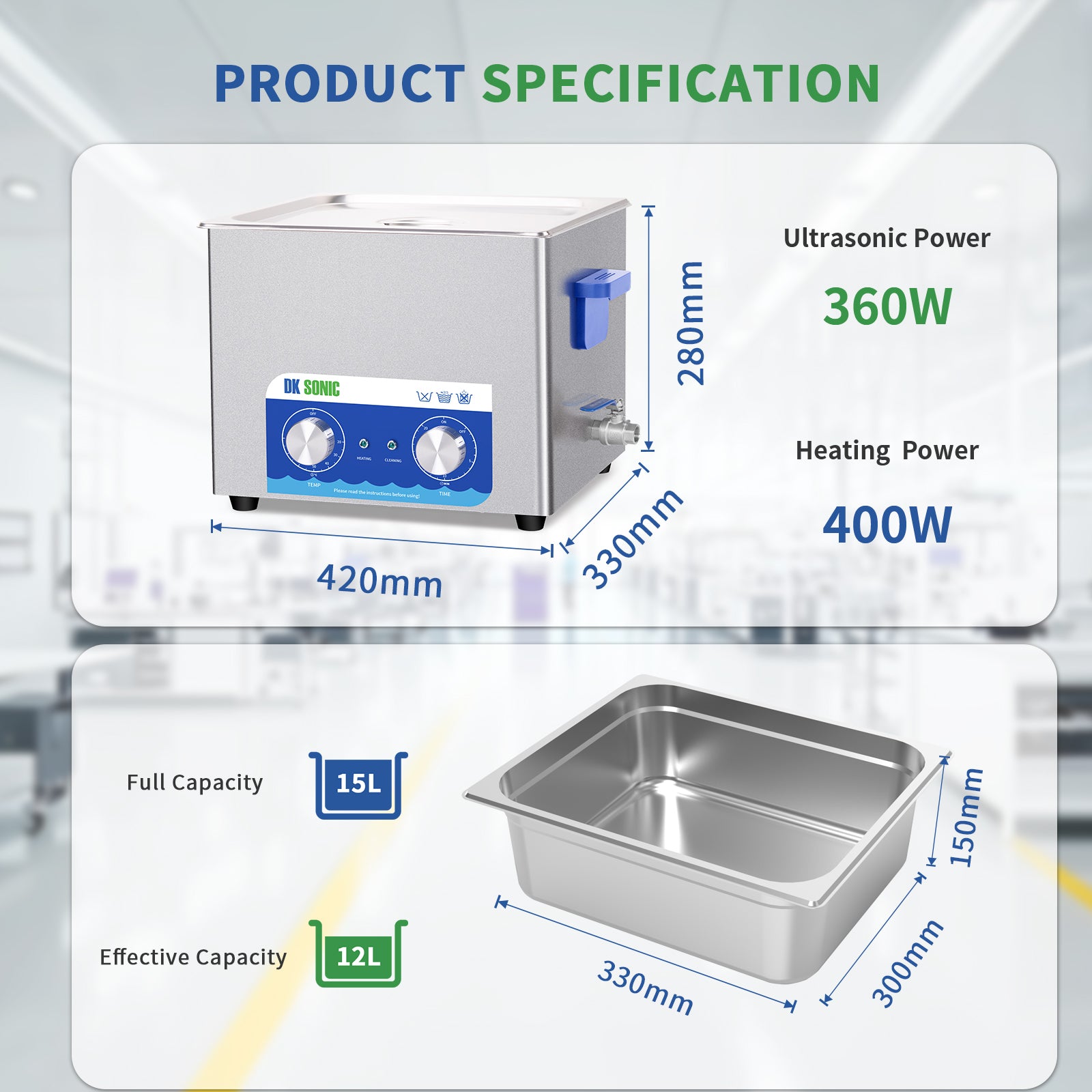 DK SONIC 15L Ultrasonic Cleaner, Mechanical Sonic Carburetor Cleaner
