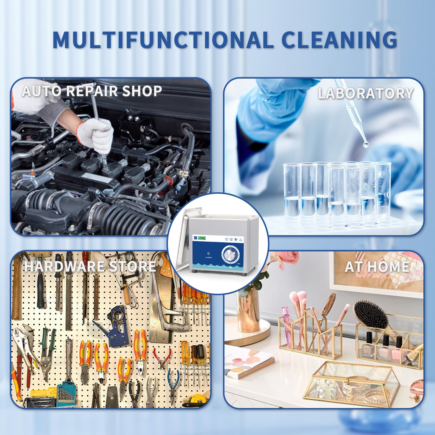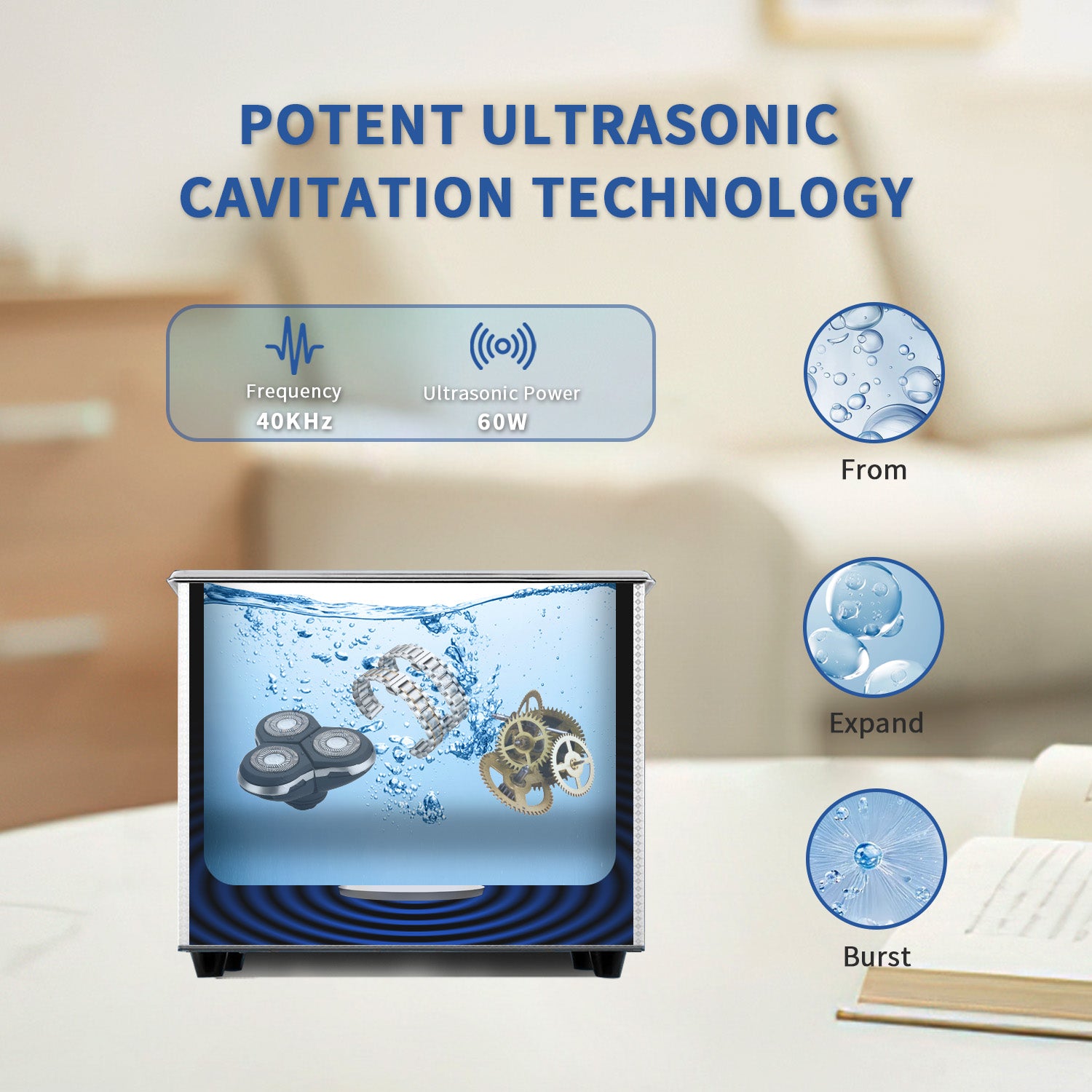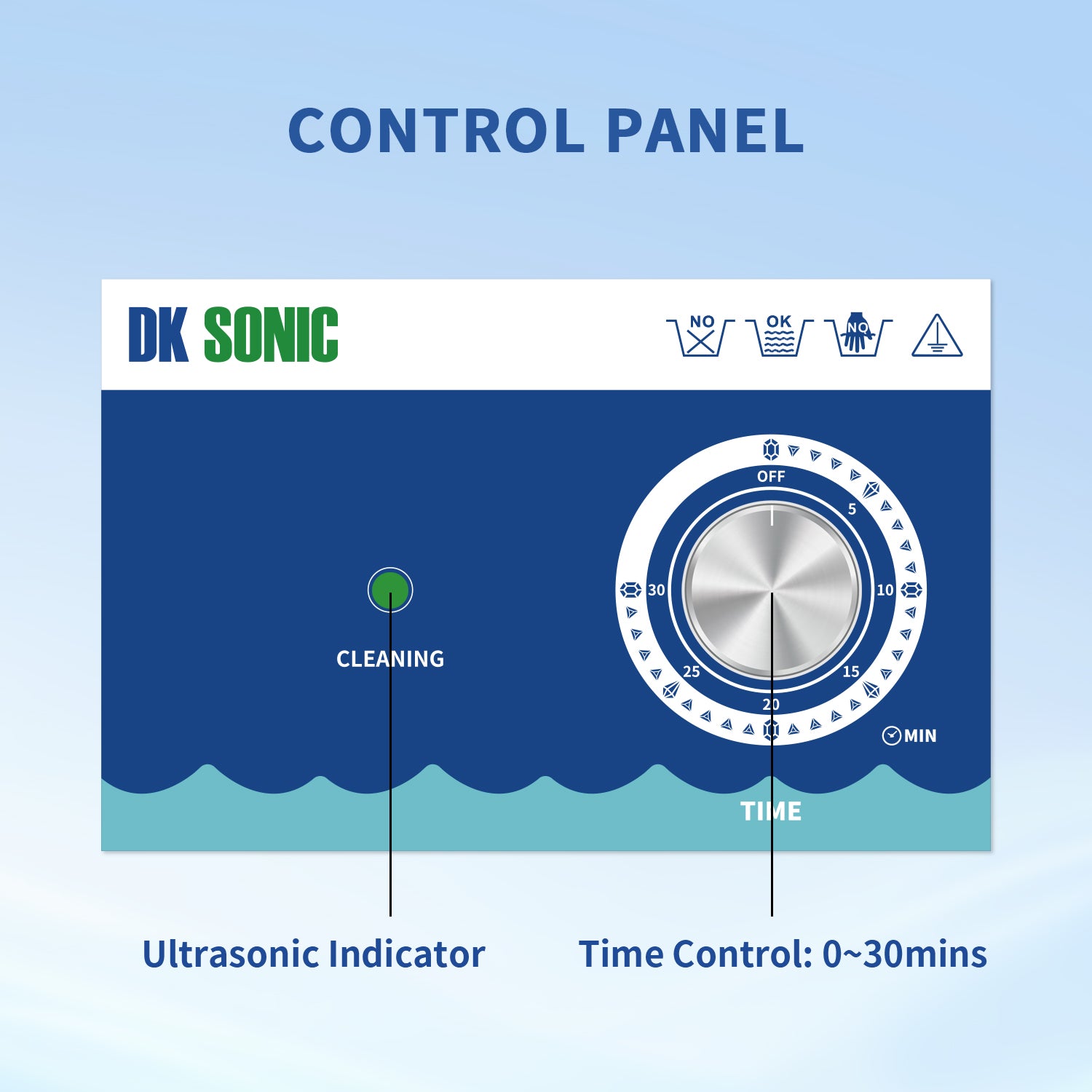 FULLWAVE mode(40KHz) for intensive rinse of blind holes or complicated surfaces; SEMIWAVE mode (semiwave based on 40KHz, i.e. 33KHz) for rough surface cleaning; DEGAS mode for removing ultrasonic fatigue so as to improve cleaning effect; PULSE mode for dynamic rinse of stubborn stains