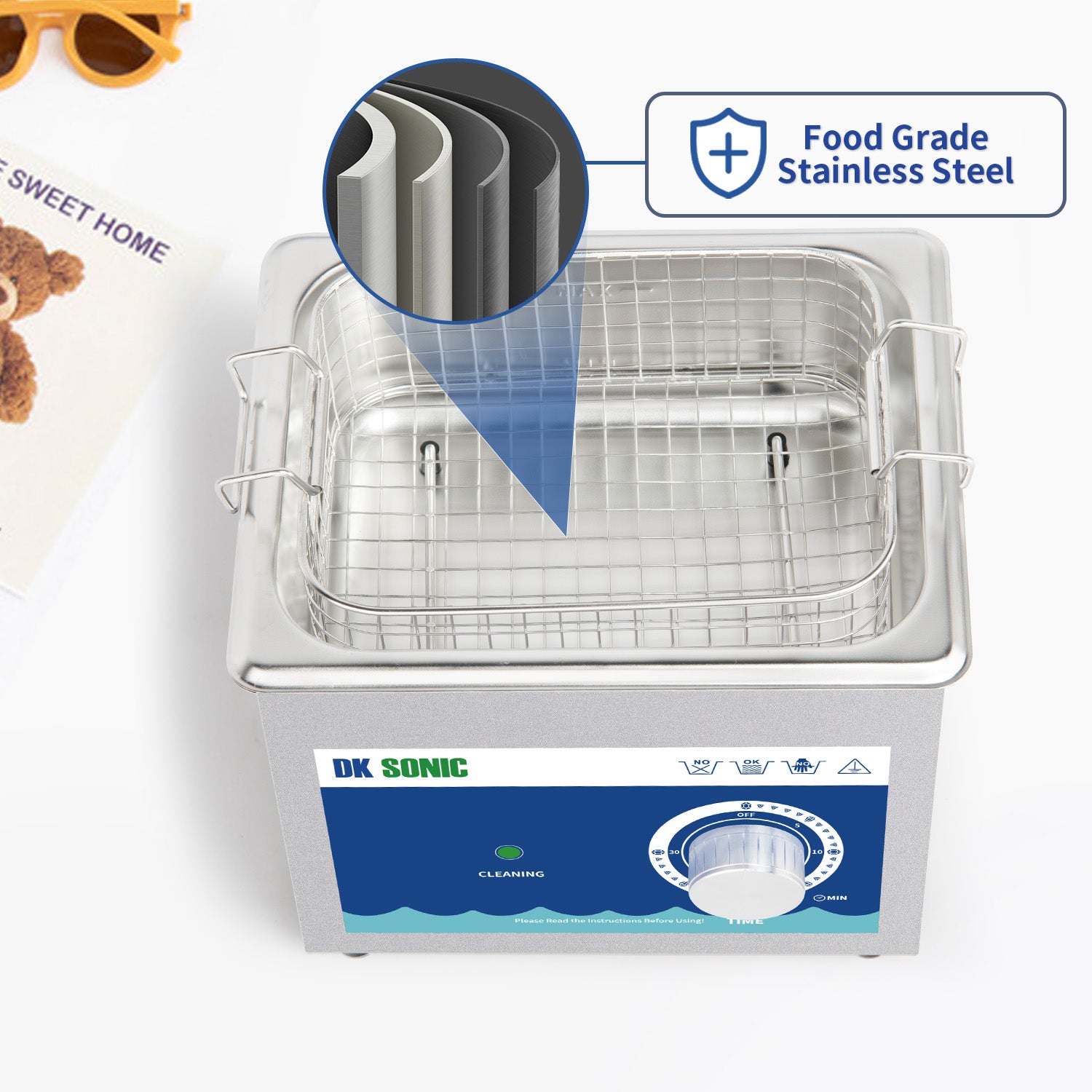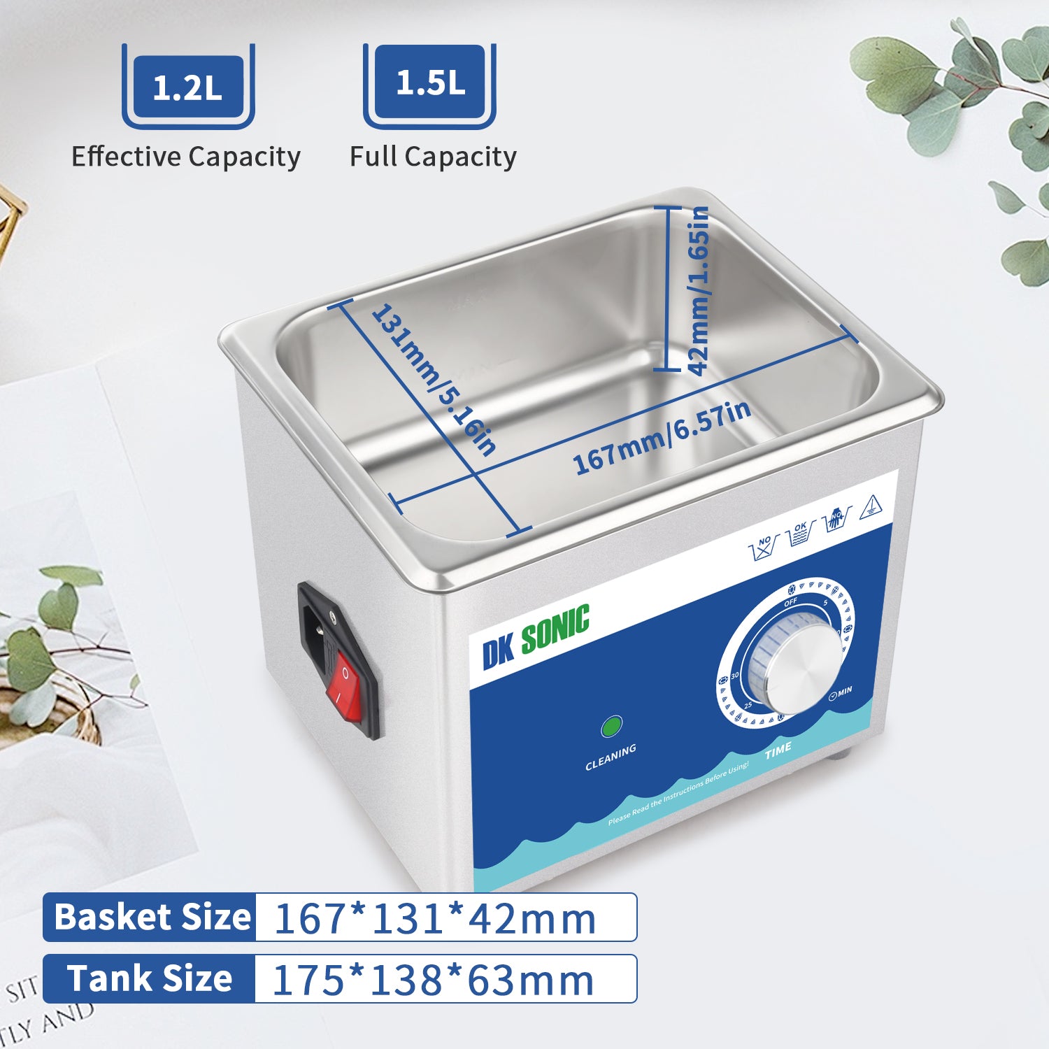 DK SONIC Ultrasonic Cleaner,1.5L 60W Stainless Steel Ultrasonic Jewelry Cleaner with Cleaning Basket,Mechanical Timer,Sonic Cleaner for Cleaning Jewelry,Eyeglasses,Coins