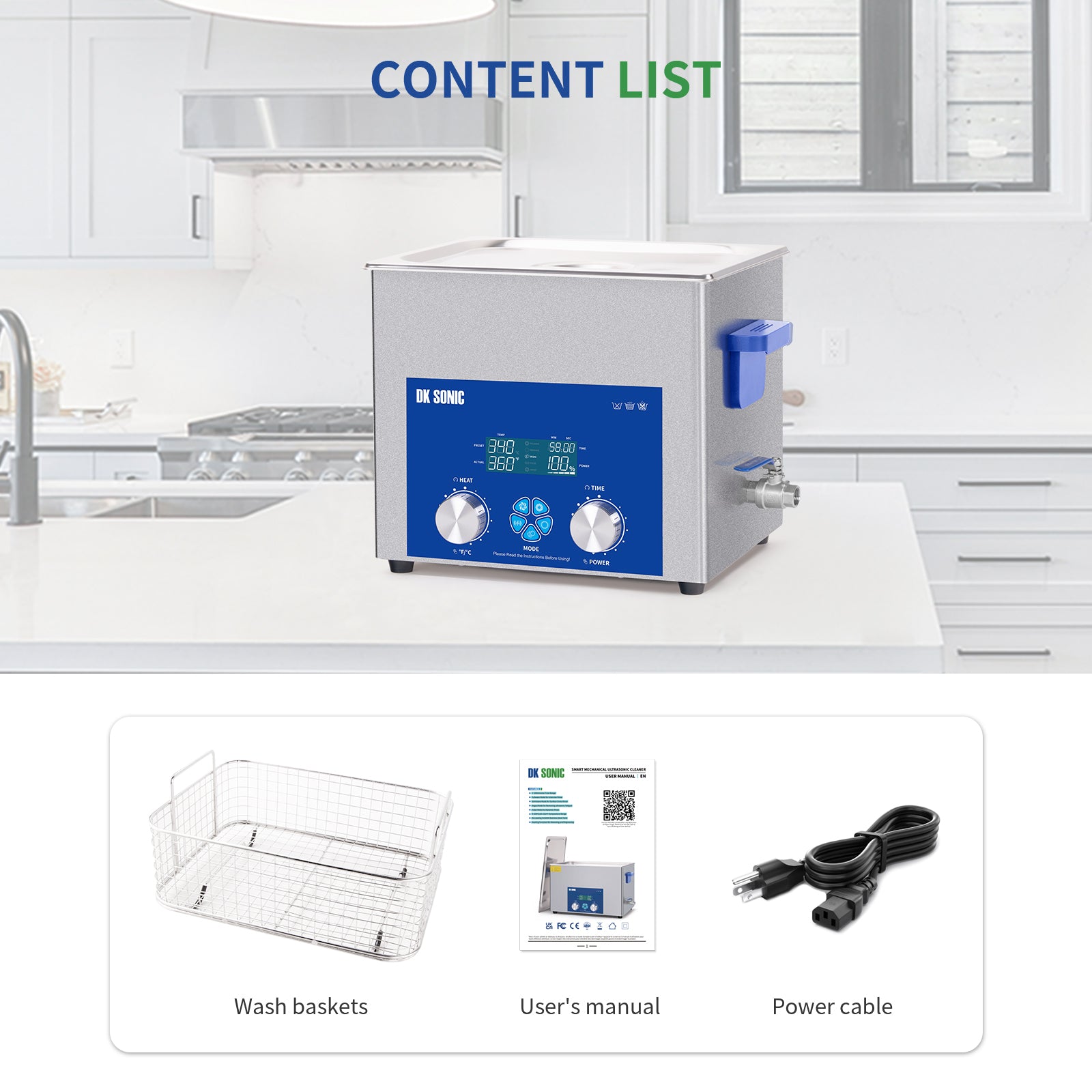 DK SONIC Ultrasonic Cleaner 10L 240W, Ultrasonic Carburetors Cleaner with Intelligent Mechanical Timer, Heater &Power Adjustable Function for Carburettors, Motorbike Engines, Chains