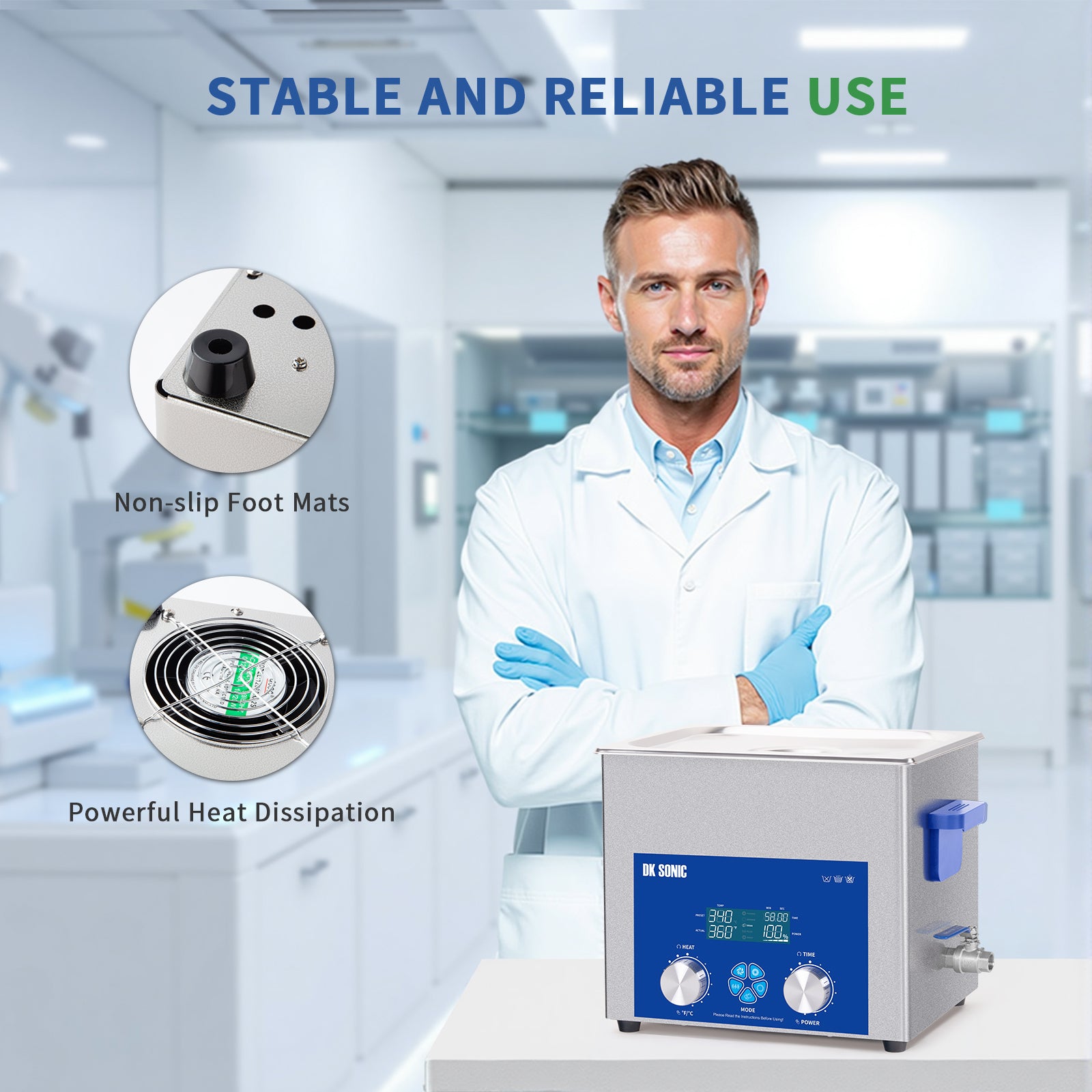 FULLWAVE mode(40KHz) for intensive rinse of blind holes or complicated surfaces; SEMIWAVE mode (semiwave based on 40KHz, i.e. 33KHz) for rough surface cleaning; DEGAS mode for removing ultrasonic fatigue so as to improve cleaning effect; PULSE mode for dynamic rinse of stubborn stains
