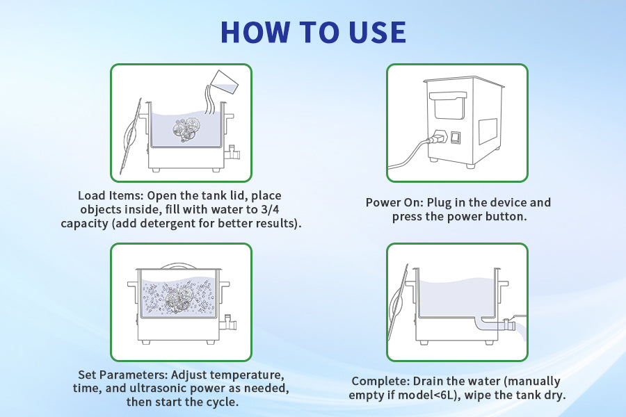This feature removes dissolved air bubbles from the liquid, ensuring ultrasonic waves penetrate deeply for thorough cleaning. Ideal for delicate items like jewelry or precision parts.